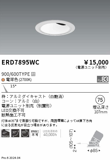 遠藤照明 ERD7895WC グレアレスユニバ_900/600タイプ_2700K