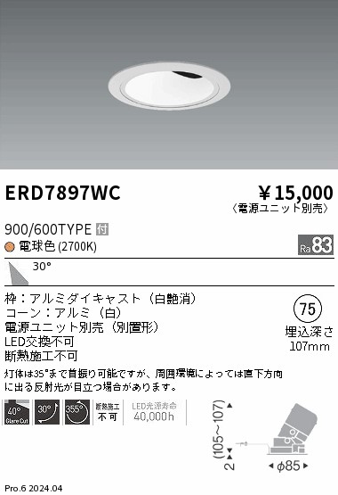 遠藤照明 ERD7897WC グレアレスユニバ_900/600タイプ_2700K