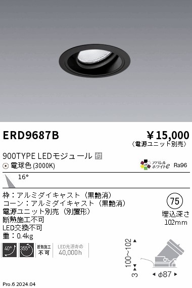 遠藤照明 ERD9687B COBユニバーサルDL 900タイプ 2400K M