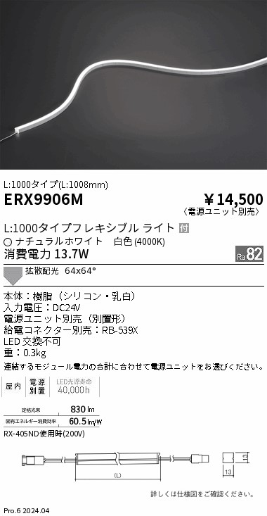 遠藤照明 ERX9906M 屋内フレキシブルエッジL横曲げ非調光_L1000_4000K