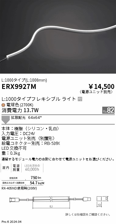 遠藤照明 ERX9927M 屋内フレキシブルエッジL横曲げ非調光_L1000_2700K