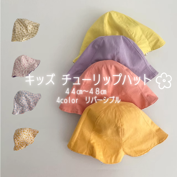子供 キッズ 帽子 日よけ バケット チューリップ フラワー ハット 花 柄 がら 赤ちゃん ベビー リバーシブル