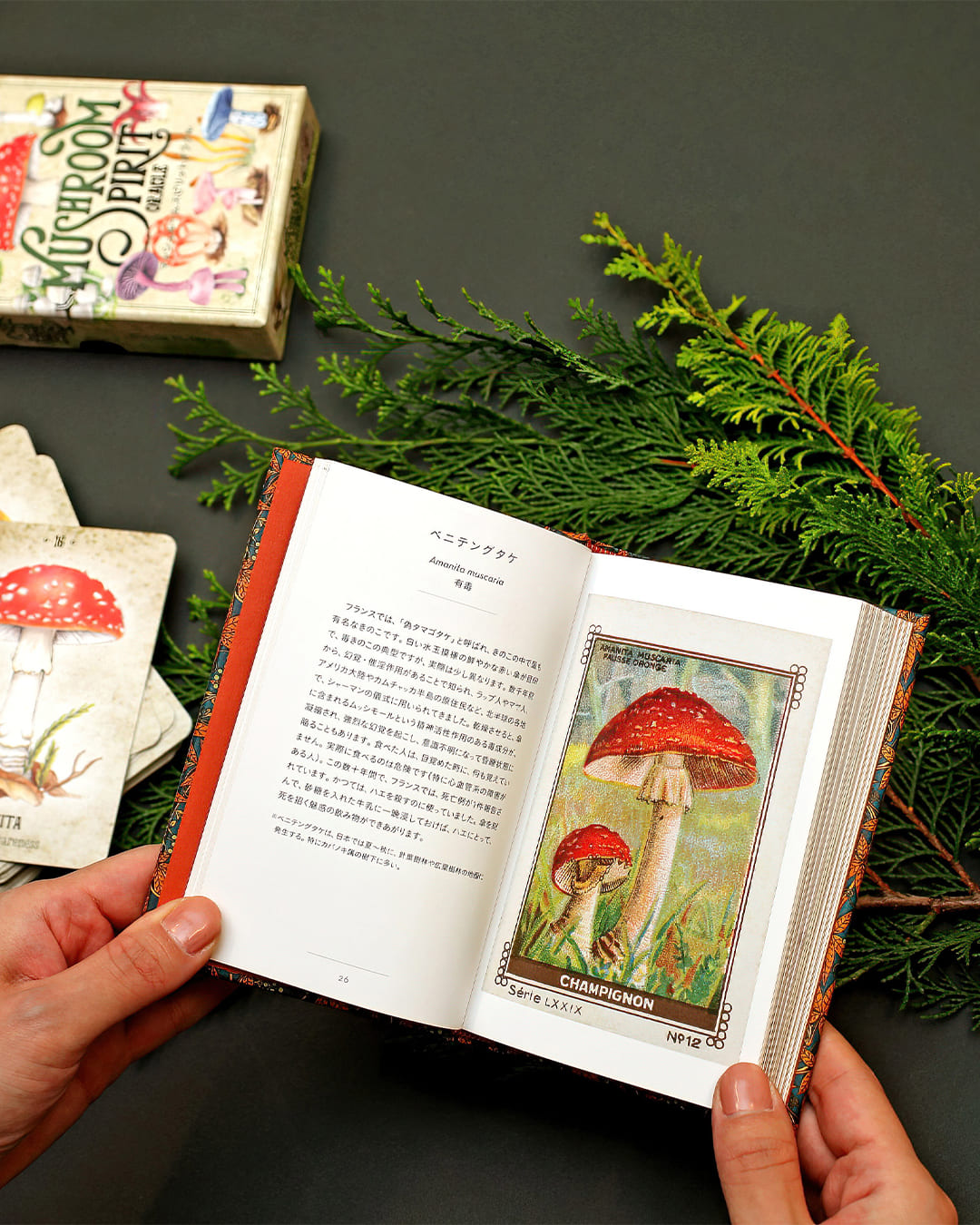 食用きのこや猛毒きのこ、かわいいきのこ…、様々なきのこの特徴や逸話をまとめた、きのこ事典。 かつてフランスにブームを巻き起こした貴重なクロモカードの挿絵で、コレクションのひとつとしても嬉しい一冊。 一緒に楽しみたいおすすめカード - 『マッシュルームスピリットオラクル』 |