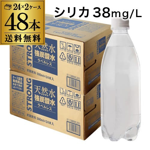 炭酸水 500ml 48本 シリカ38mg/L シリカ炭酸水 チェリオ 強炭酸水 送料無料 24本×2ケース ラベルレス GLY