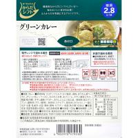 原材料:ココナッツミルク(タイ製造)、鶏肉、ほうれん草ペースト、グリーンカレーペースト、たけのこ水煮、生クリーム、チキン調味エキス、魚醤(魚介類)、チキン調味パウダー、おろしにんにく加工品/増粘剤(加工デンプン)、調味料(アミノ酸等)、甘味料(ステビア)、着色料(カラメル)、(一部にえび・小麦・乳成分・大豆・鶏肉・豚肉・ゼラチン・魚醤(魚介類)を含む)