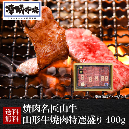 送料無料 焼肉名匠山牛 山形牛 焼肉特選盛り 400g 肩 モモ肉 バラ 焼肉 クール便 冷凍 産地直送 山形ミートランド(産直)
