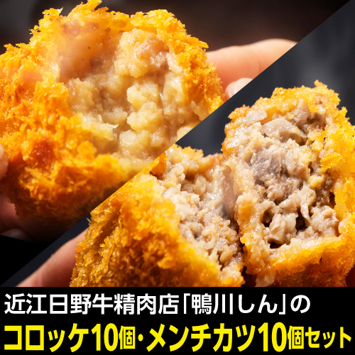 送料無料 鴨川しんの 近江牛コロッケ&メンチカツ食べ比べセット 各10個入 近江牛 日野牛 牛肉 肉 鴨川たかし 産地直送 冷凍 (産直)