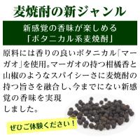 マーガオの持つ柑橘香と山椒のようなスパイシーさに、麦焼酎の持つ旨さを融合。