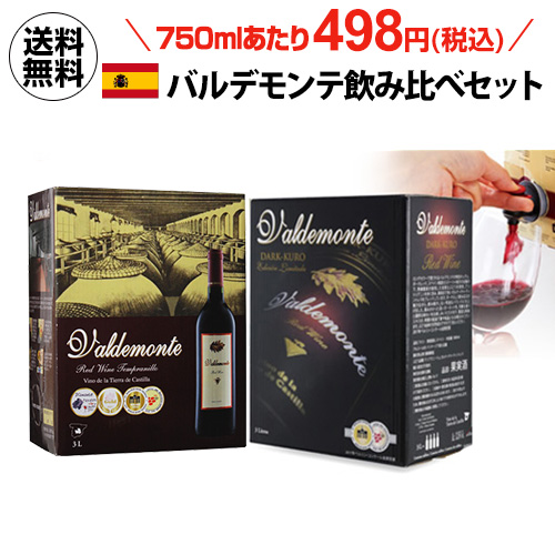 赤ワイン 送料無料 赤箱ワイン2種セット 3L×2箱 バルデモンテ3L ダーク3L 箱ワイン 赤ワイン 辛口 スペイン BIB 飲み比べ 長S