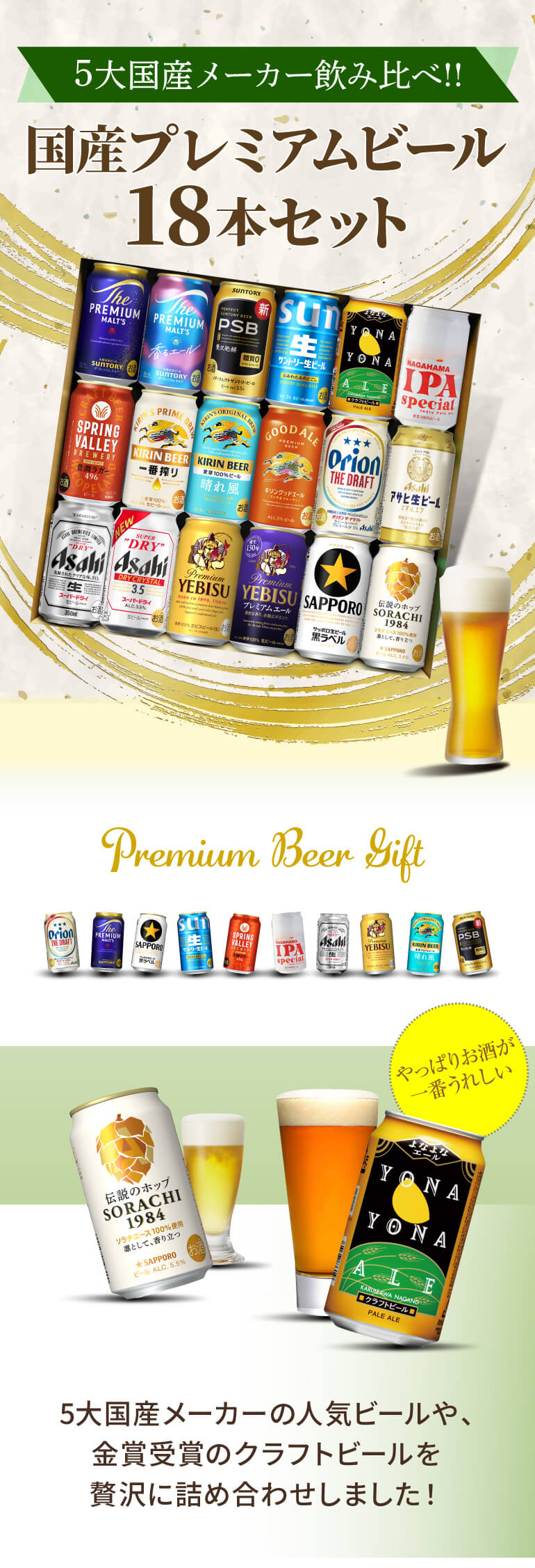 ビール ギフト 飲み比べ 国産プレミアムビール18本セット 350ml 送料無料 プレゼント スーパードライ 長S