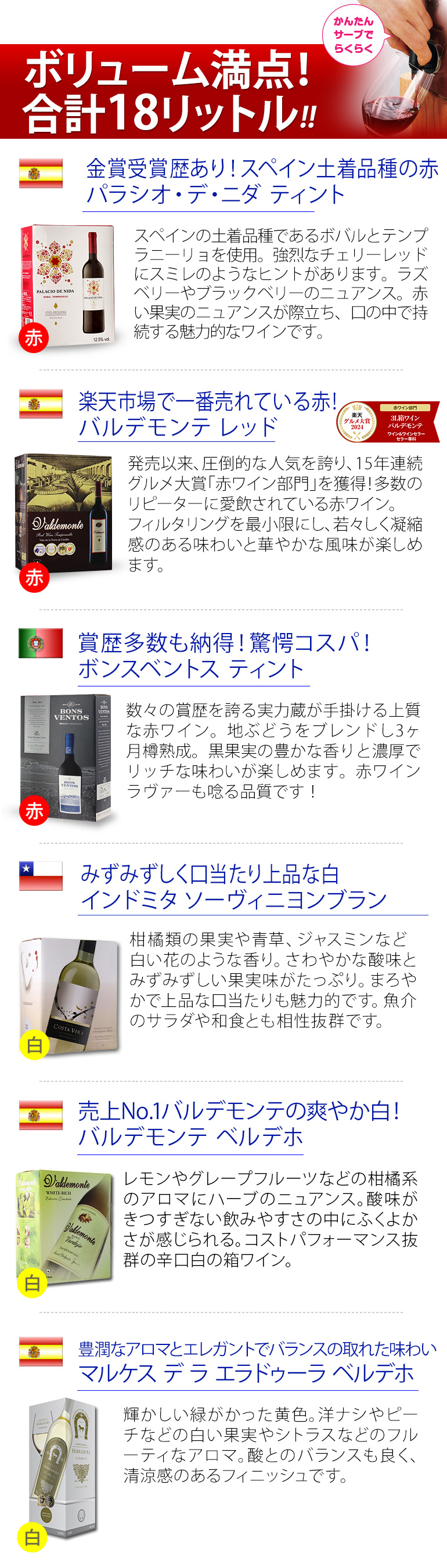 ワイン ワインセット 送料無料 箱ワイン バラエティセット116弾 セット(6箱入) 赤ワイン 白ワイン BIB 長S