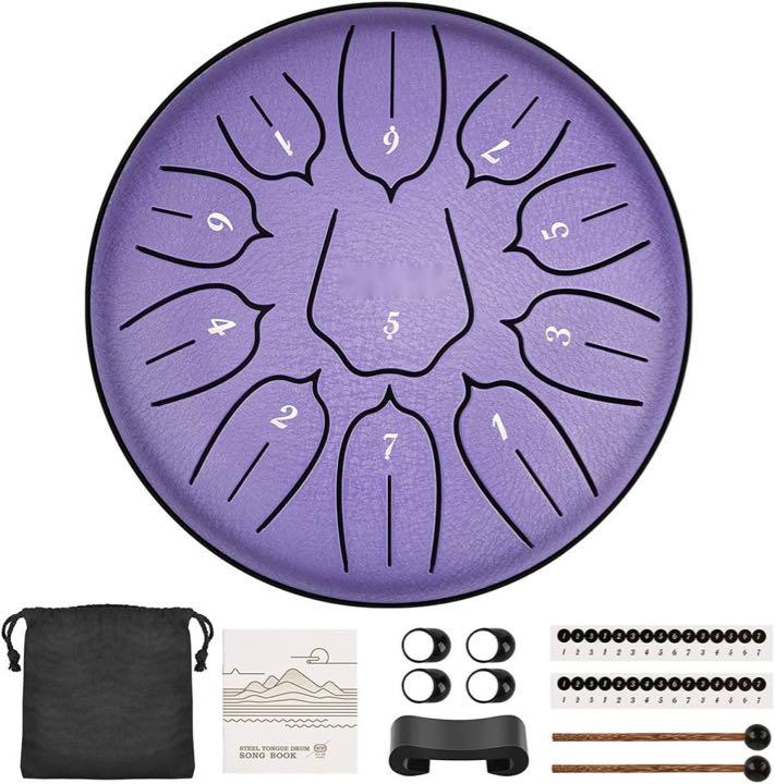 スリットドラム スチールタングドラム 6インチ 11音 金属ドラム 打楽器 癒しの楽器 瞑想 ヨガ 禅 マレット 収納バッグ付き