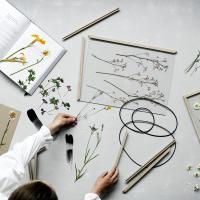 構造は、アクリル板2枚にアートを挟み、枠材4本で囲い、ゴムバンドで留めるというシンプルなもの。