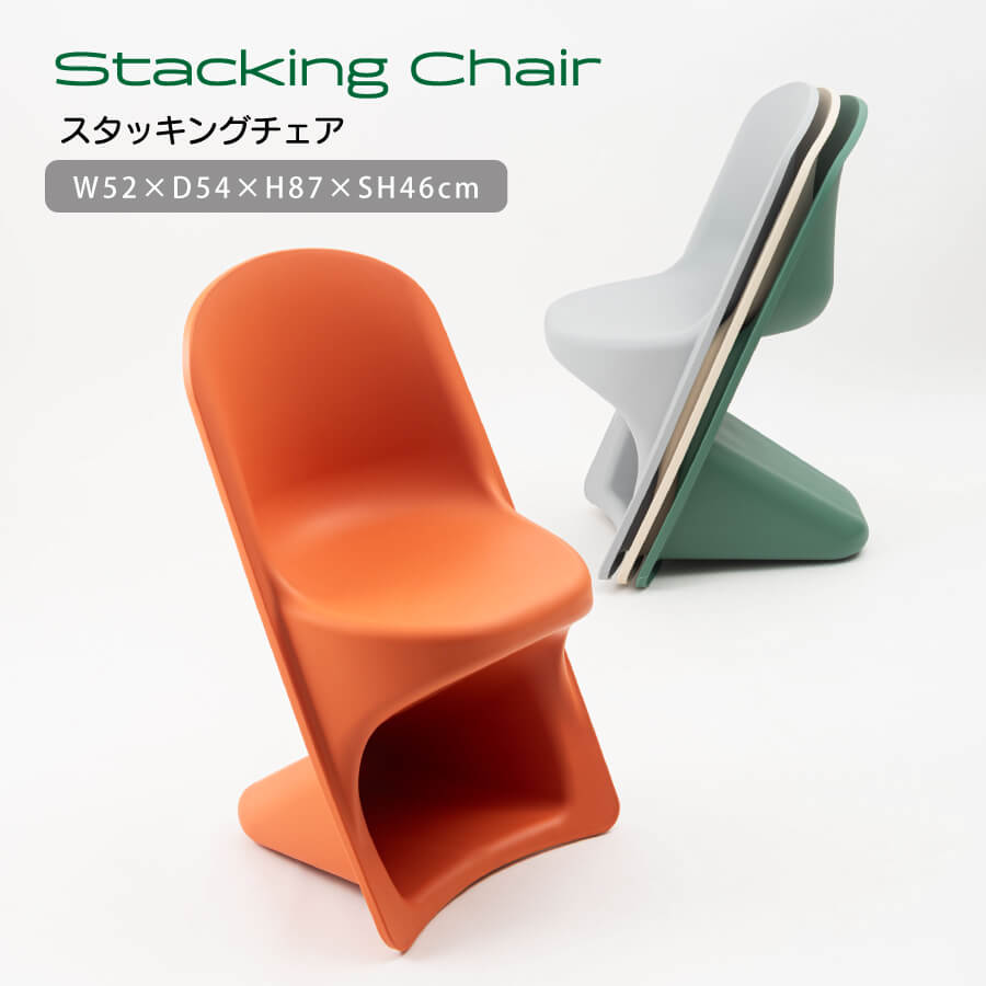 ●滑らかな曲線が生み出す独特のフォルムが目を引くスタッキングチェア。