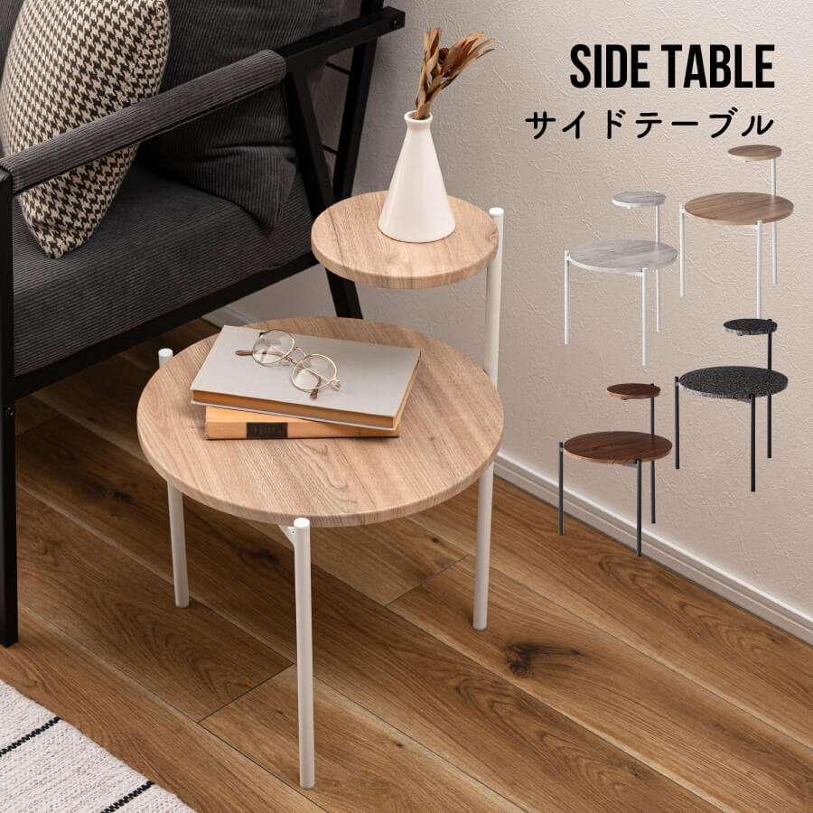 サイドテーブル おしゃれ 丸 北欧 ラウンド ベッドサイド ソファサイド ナチュラル グレー モノトーン PT-205