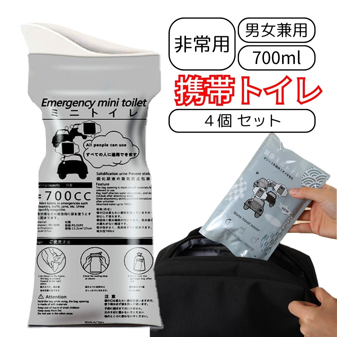 携帯用ミニトイレ 4個セット 携帯トイレ 車 登山 釣り 非常用トイレ 防災グッズ 渋滞 キャンプ 大人 子供 女性 男性 臭わない 使い捨て 固まる 簡易トイレ 災害