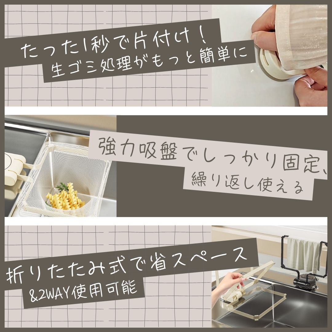 三角コーナー いらず 水切りかご 吸盤式 水切りラック 水槽台 水切りネットホルダー シンク ゴミ受け 水切り サンカクコーナー スポンジホルダー コーナーラック キッチン ネット50枚付き 台所 キッチンドレイン 排水溝 生ゴミ処理 折りたたみ 省スペース 浮かせる おしゃれ 貼り直しOK 固定力UP!折りたたみ可能で人気のキッチンドレイン最新版!何度も貼り直し可能な吸着パッドで更に便利に。 水切りネット キッチン 送料無料 2025最新版 サンカクコーナーいらず