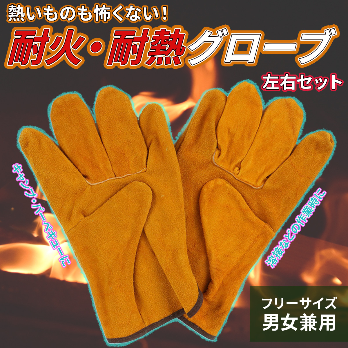 焚き火 手袋 耐熱 グローブ キャンプ 本革 耐火 グローブ 牛革 アウトドア バーベキュー 薪割り 作業用
