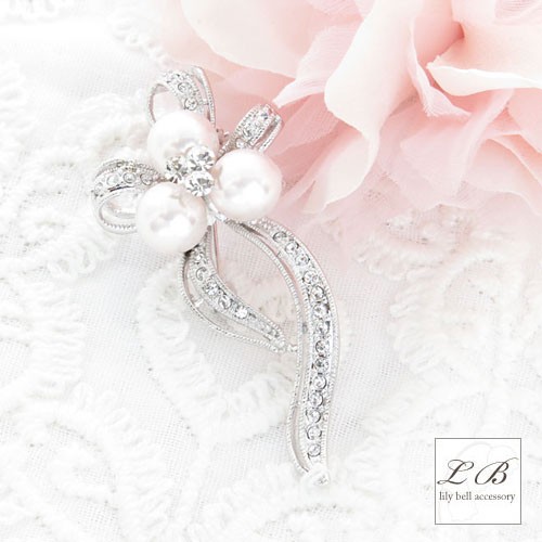 ブローチ(br150)パール フォーマル 卒業式 入学式 ロングリボン ラインストーン