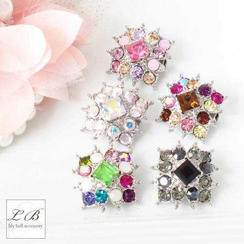 きらきらラインストーン輝くミニブローチ。 スクエア型ストーンとサークル型ストーンのちょっぴりクールな異種ミックスデザインです。 胸元のワンポイントにはもちろん、バッグや小物、マスクチャームにもお勧めです☆