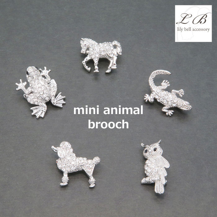 ブローチ (br324) ミニ 動物 アニマル きらきら ラインストーン 馬 トカゲ プードル 犬 フクロウ カエル シンプル ピン シルバー