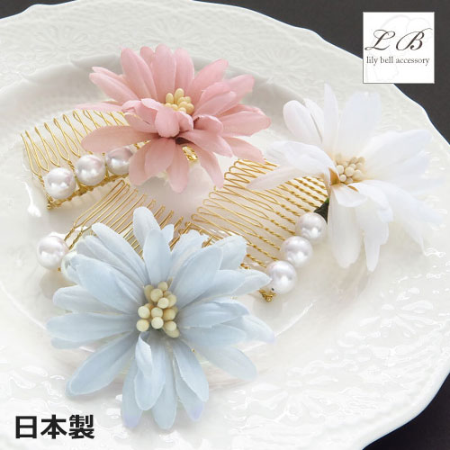 ヘアコーム 髪飾り 花 パール ミニ 小 ワイヤーコーム 夜会巻きコーム ヘアアクセサリー cb33