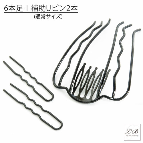 夜会巻きコーム 6本足 ヘアコーム&補助Uピン (通常サイズ2本) 【3点セット】(mcb-bein7)モアコーム ロングヘアー しっかり 丈夫 シンプル 6本足 ヘアコーム