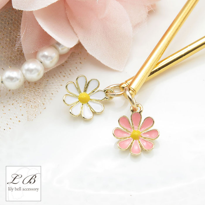 可愛らしい花フラワーチャームが揺れる一本かんざし簪。 パステル調カラーがとってもキュート!! シンプルなデザインですので、普段のオシャレにピッタリです♪