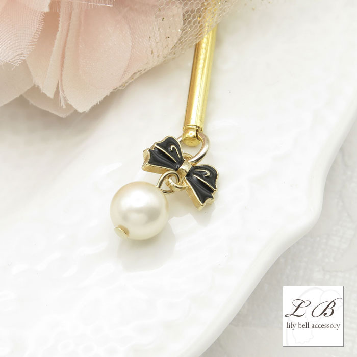 可愛らしいブラックリボン揺れる一本かんざし簪。 小さなリボンモチーフの下には艶やかなパールビーズがゆらゆらと揺れ、愛らしさあふれる印象に。 小さめサイズのモチーフですので、かんざし初心者さんにもお勧めです♪