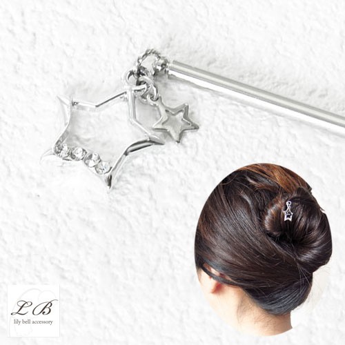 かんざし 普段使い 星 一本 簪 スター きらきら シルバー ラインストーン スティック ojs62