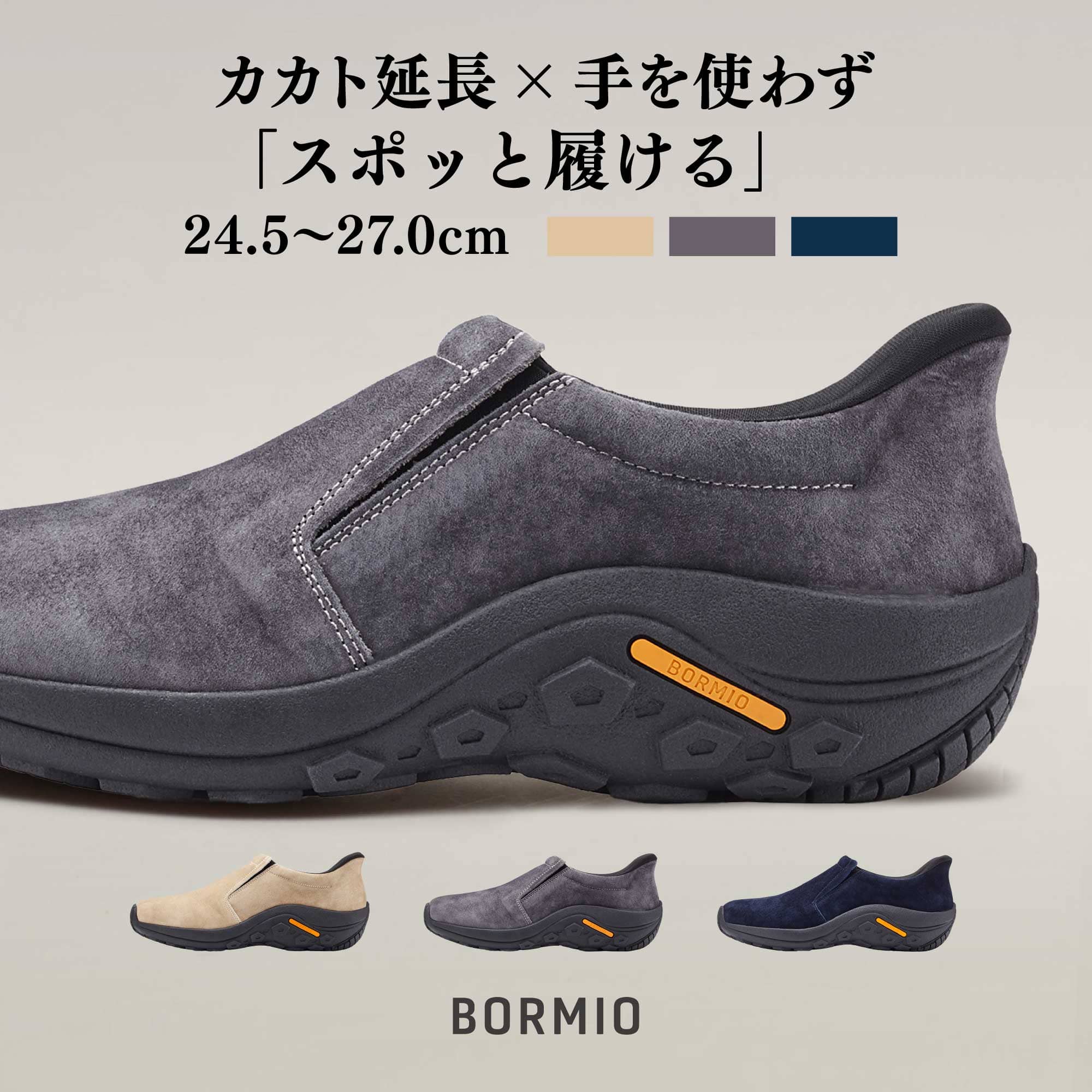 立ったままスポッと履ける スリッポン メンズ スニーカー ウォーキングシューズ 本革 スウェード 撥水 カジュアル 30日間品質保証 × 交換OK BMM2010