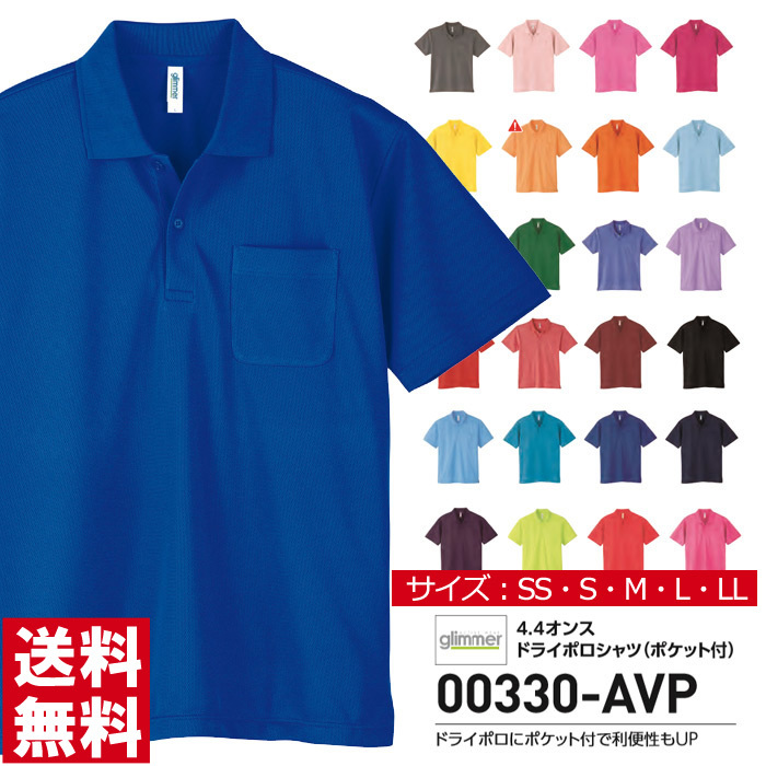 吸汗 速乾 ポロシャツ 半袖 メンズ glimmer グリマー 4.4オンス ドライ ポロシャツ ポケット付 スポーツ ゴルフ ビズポロ イベント お揃い 00330-AVP 通販A15