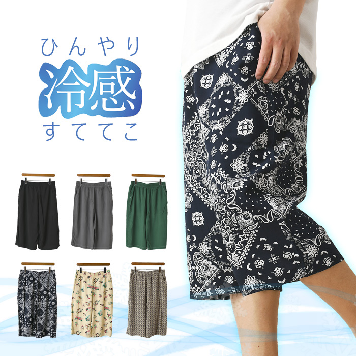 ステテコ メンズ おしゃれ 7分丈 派手 無地 総柄 すててこ ルームウェア パンツ ズボン クロップド 接触冷感 夏 【RL4-1305】 送料無料 通販M15