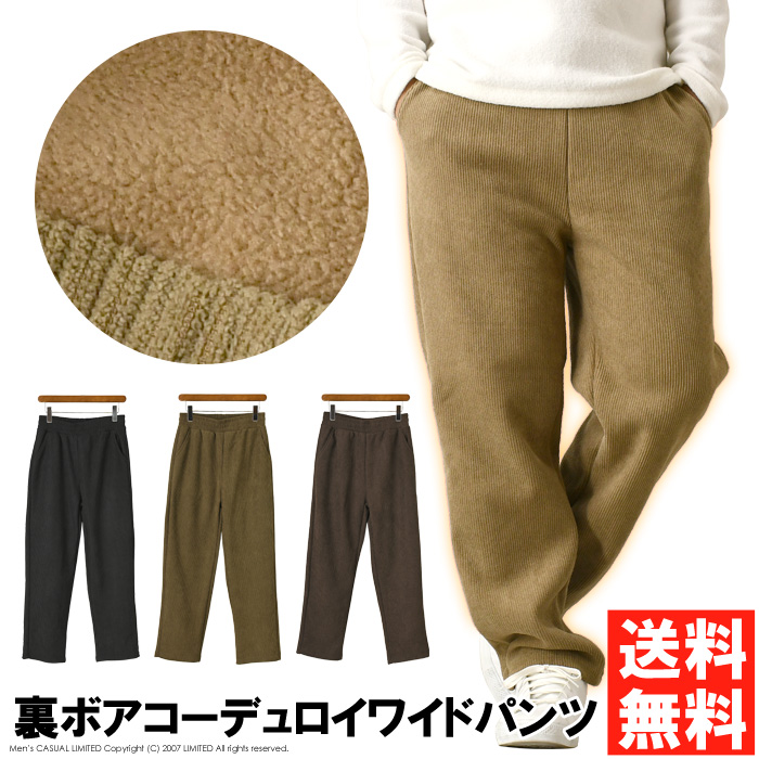 裏ボア コーデュロイパンツ メンズ ワイドパンツ ボアフリース あったか 冬 防寒 裏起毛 ルームウェア イージーパンツ もこもこ 暖かパンツ 【A1-1528】送料無料