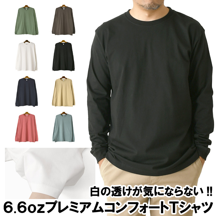 6.6オンス プレミアムコンフォートTシャツ メンズ 無地 長袖 カットソー ヘビーウェイト 厚手 しっかり 【DF1201】 送料無料 通販A15