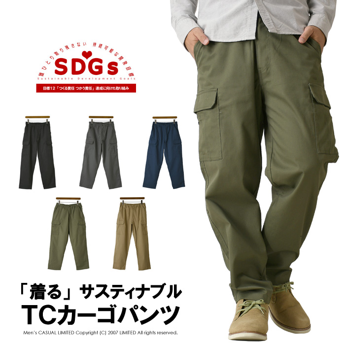 カーゴパンツ メンズ TC素材 サステナブル 残反 キャンプ キャンプウェア アウトドア オーバーパンツ ゆったり ウエストゴム 爆買 【EP-02-5】送料無料 通販A3