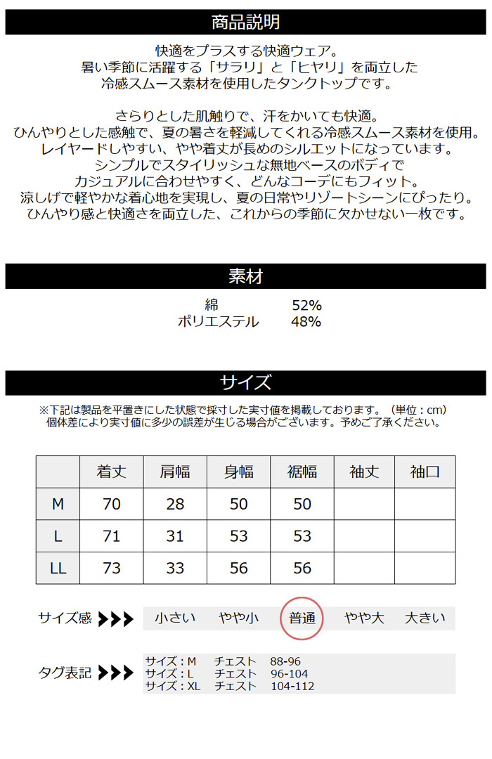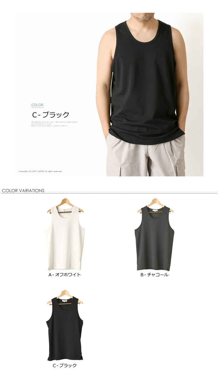 接触冷感 スムース ロング丈 タンクトップ メンズ 無地 夏 重ね着 レイヤード ノースリーブ 涼しい 夏 インナー 【K1-1433】 送料無料 通販A15