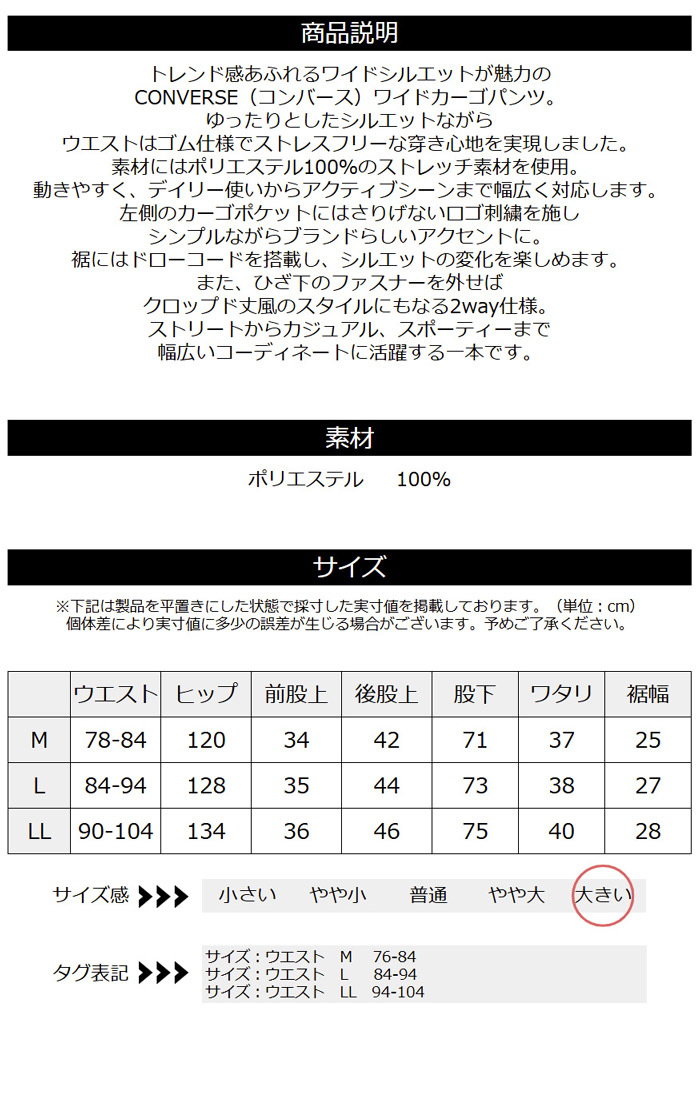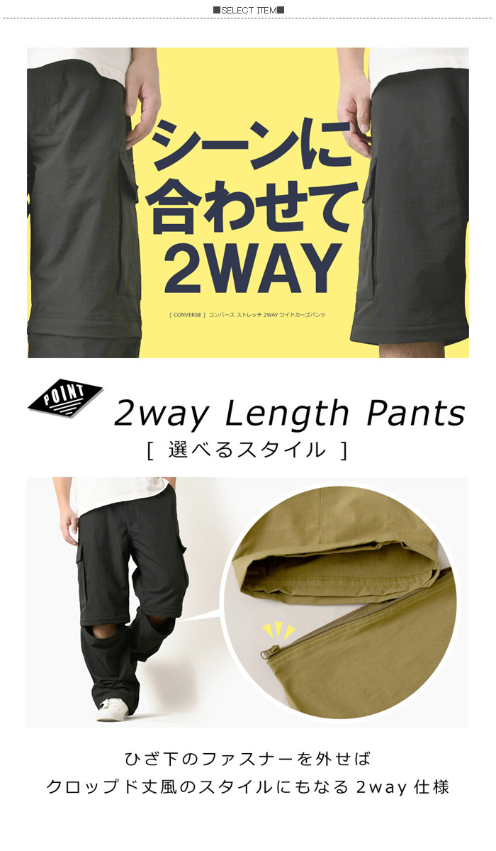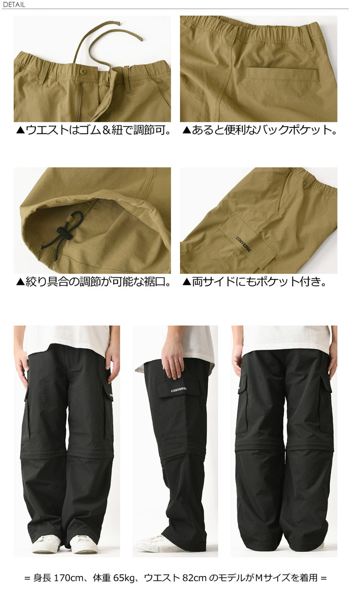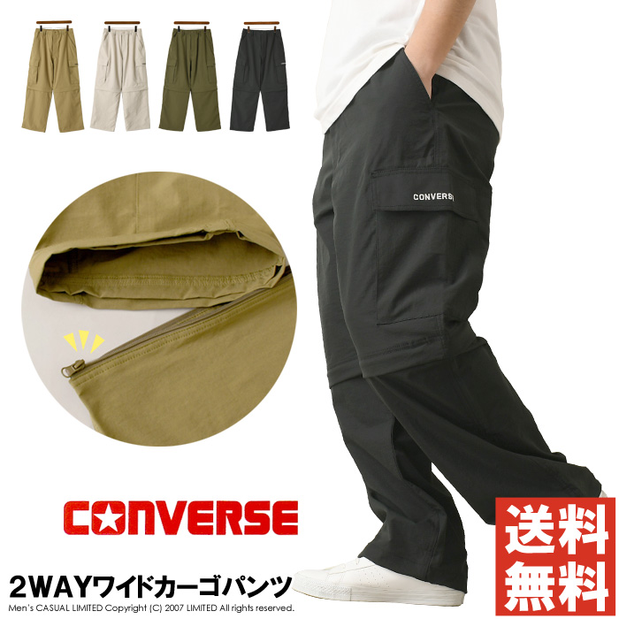 CONVERSE コンバース ワイドカーゴパンツ メンズ ストレッチ ワイドパンツ 2way ドローコード クロップド 刺繍 イージーパンツ 【RC3-1543】 送料無料 通販A3