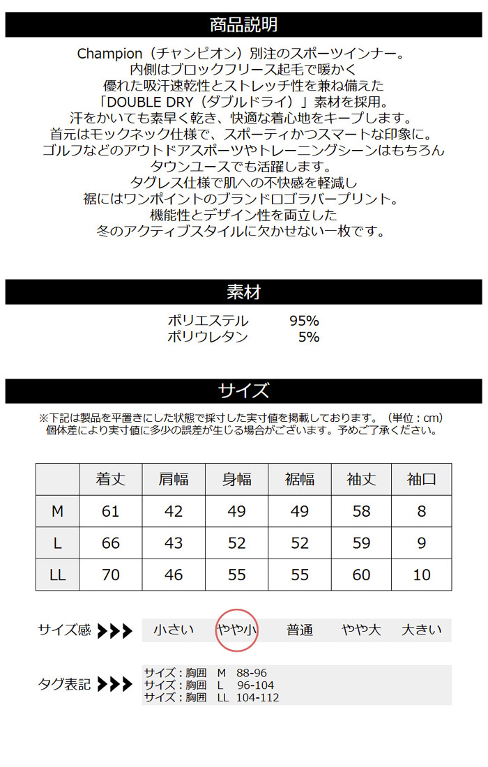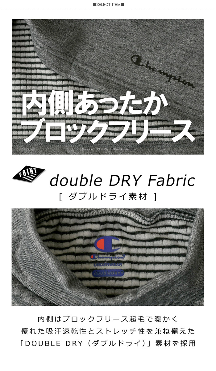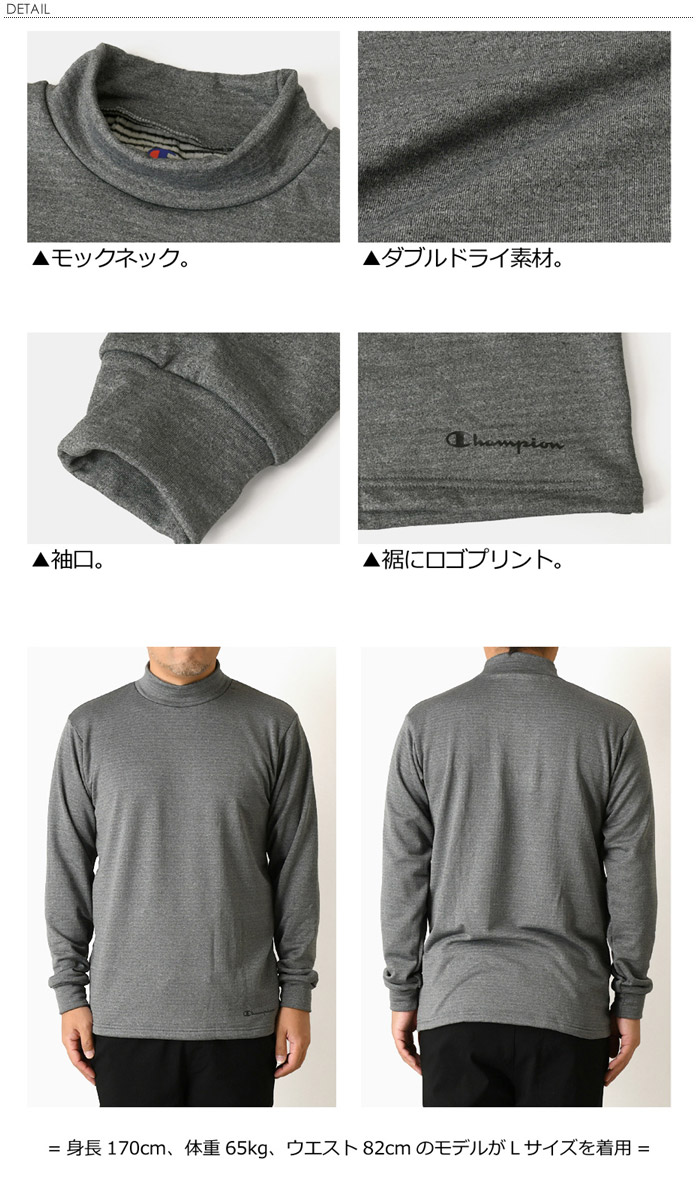 チャンピオン モックネック インナー 長袖 メンズ ゴルフ スポーツ ブロックフリース 裏起毛 ダブルドライ 吸汗速乾 ストレッチ 【RL2-1488】 送料無料 通販A3