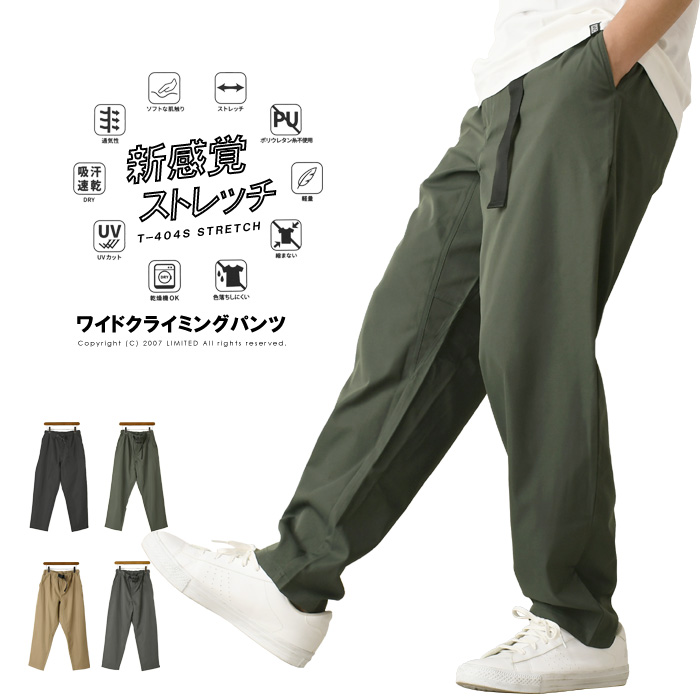 クライミングパンツ メンズ ワイドパンツ ゆったり ストレッチ 吸汗速乾 通気性 軽量 UVカット 乾燥機OK 登山 アウトドア 春 夏 秋 【RQ1379】 送料無料 通販A3