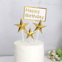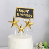 スクエア Happy Birthday + スター ケーキトッパー 3本 セット 誕生日 バースデー お誕生日 デコレーション 記念写真 写真撮影 送料無料