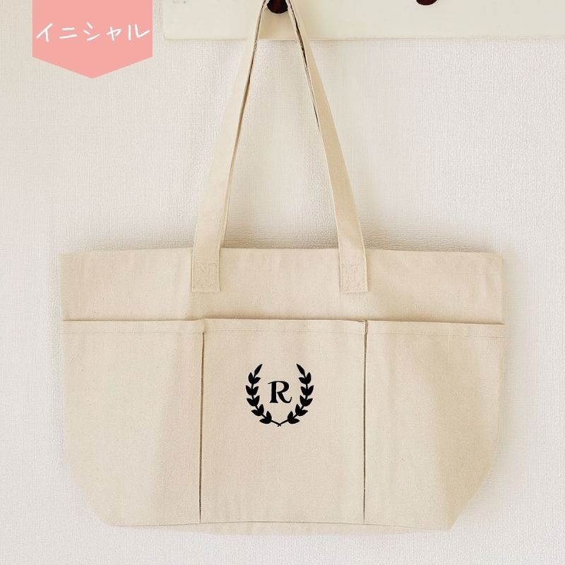 \ イニシャル / マザーズバッグ リーフ リボン 出産祝い 出産準備 プレゼント ギフト おしゃれ 保育園バック 横ポケット お買い物バッグ 推し活バッグ