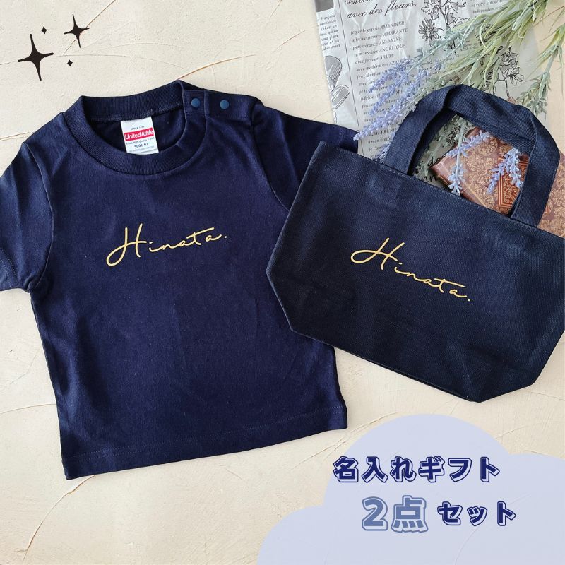 \ 名入れ / 2点 セット ( Tシャツ + トート ) ssdot 名前 名入り 出産祝い 男の子 女の子 Tシャツセット ベビーギフト ギフト 送別品 誕生日 プレゼント