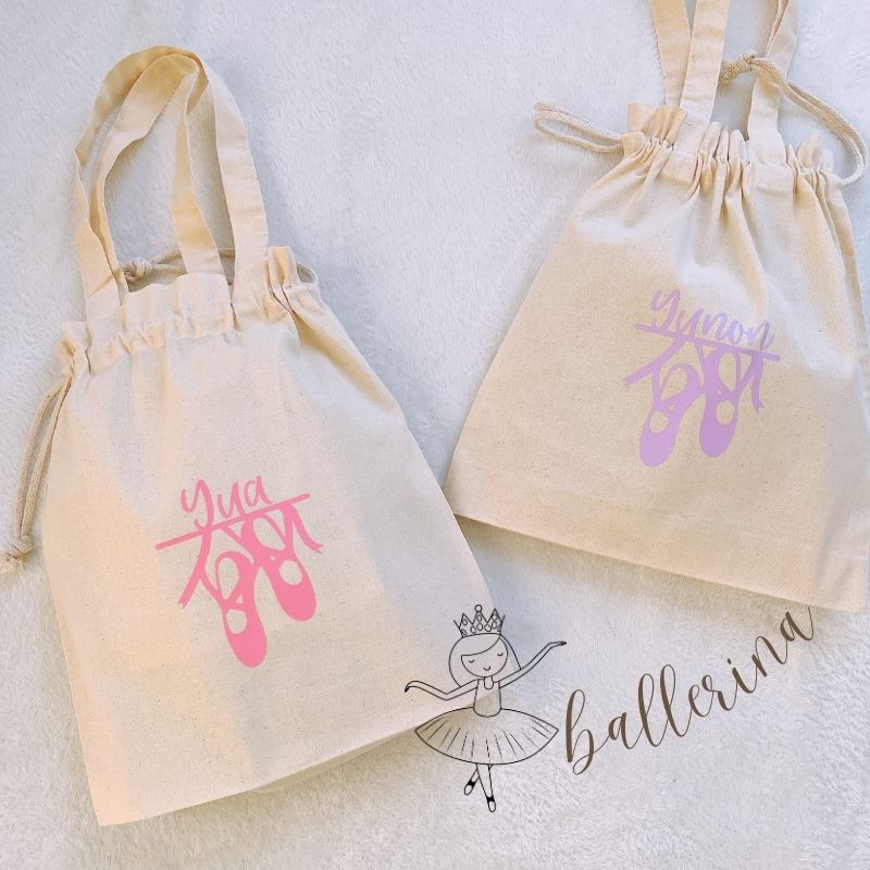 \ 名入れ / 持ち手付き 巾着 バレエシューズ バレリーナ 名前 お着替え袋 体操服袋 巾着袋 体操服入れ 小学生 幼稚園 保育園 女の子 出産祝い 入園グッズ
