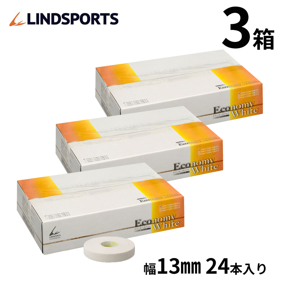 エコノミーホワイト 固定テープ 非伸縮 白 13mm x 13.8m 24本入×3箱 スポーツ ホワイトテーピング テーピングテープ LINDSPORTS リンドスポーツ