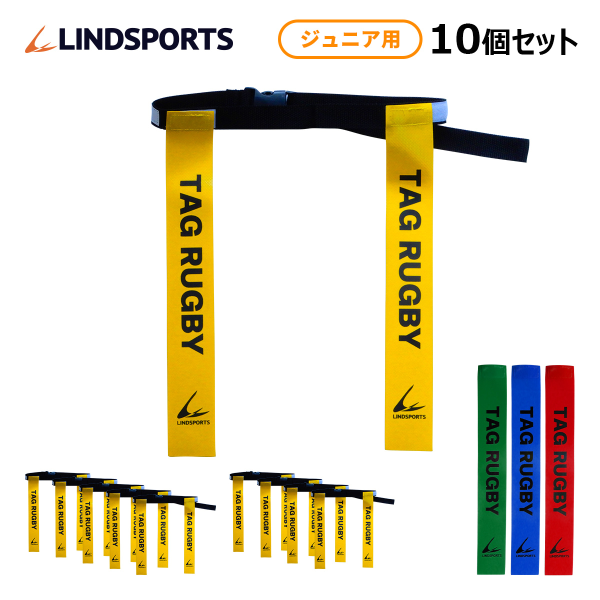タグラグビー NEW タグベルト ジュニア (ウエスト 約53cm〜90cm) 10個セット LINDSPORTS リンドスポーツ