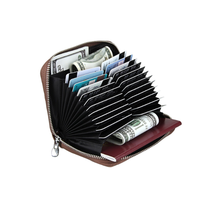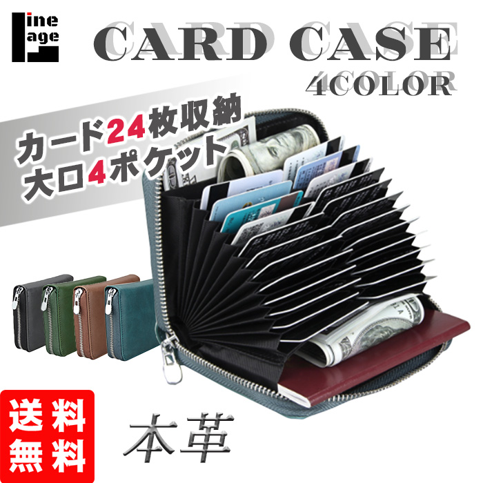 カード24枚収納可能、両サイド大口ポケット2つ、裏地裏ポケット2つ