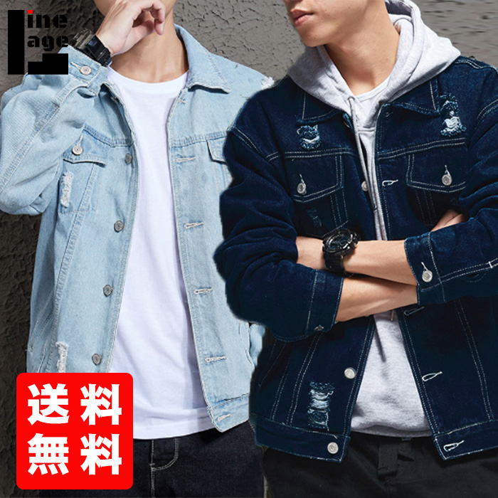 gジャン コーデ 秋 メンズ おしゃれ デニム 大きいサイズ セカンド デニムジャケット ダメージ加工