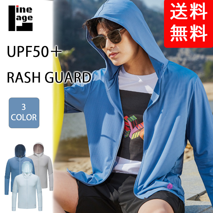 ラッシュガード uv メンズ upf50 無地 長袖 海 パーカー フード グレー ブルー 男性 プール