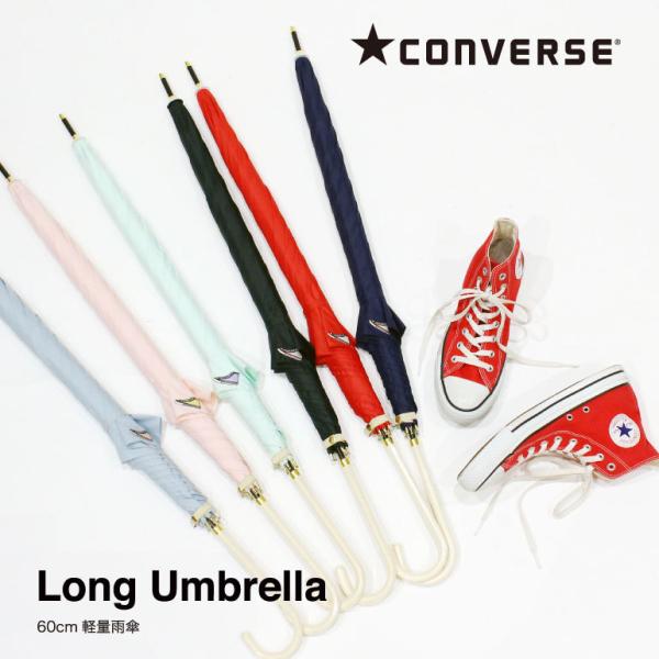 雨傘 レディース 長傘 60cm 無地 CONVERSE コンバース レディース ブランド 黒 ブラック 紺 ネイビー 赤 レッド ピンク 水色 サックス 緑 ミントグリーン 母の日